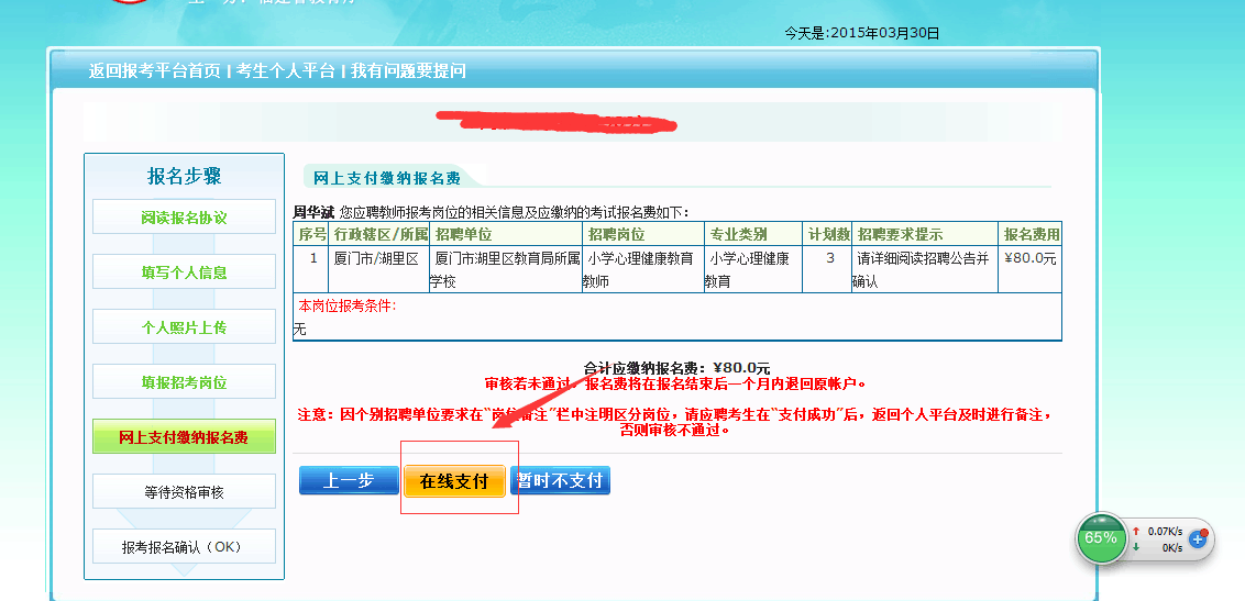 每位應(yīng)聘考生只能選擇報考1個崗位(即1個縣〈市、區(qū)〉)招聘考錄單位,每個崗位報名考試費(fèi)80元(根據(jù)閩財(cái)綜〔2010〕23號)。筆試考試地點(diǎn)統(tǒng)一設(shè)在招聘單位轄區(qū)的設(shè)區(qū)市人民政府所在地。
