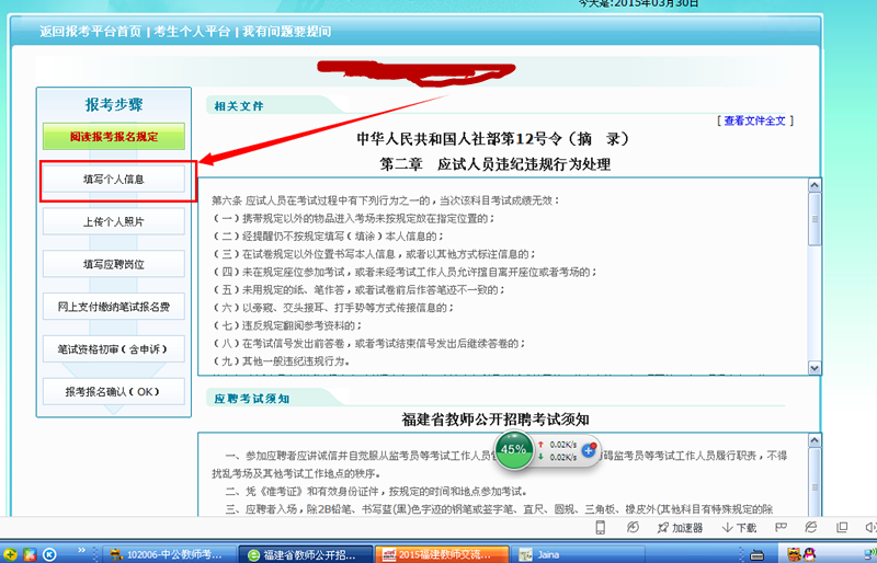 福建教師招聘統(tǒng)考即將開始,為方便各位考生了解福建教師招聘考試報考流程,中公網(wǎng)校小編整理了福建教師招聘考試報名流程詳解供各位考生參考!