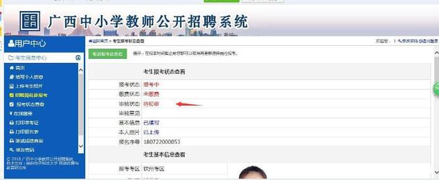 第六步:報考后,可在“報考狀態(tài)查看”中查看自己的報考信息及審核狀態(tài)。注意及時看自己的崗位是否審核通過。