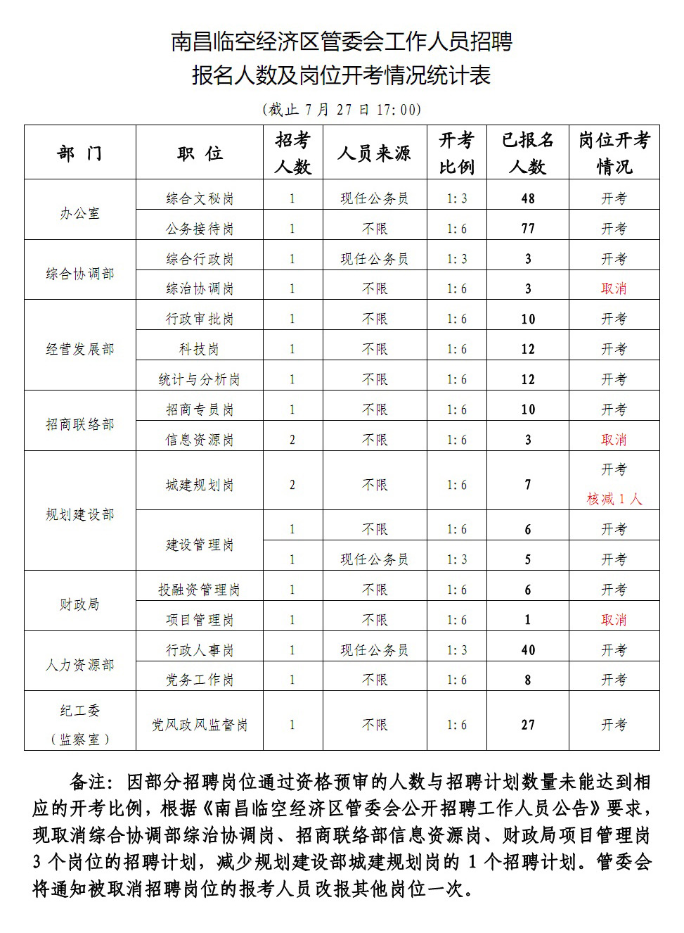 2015江西南昌臨空經(jīng)濟區(qū)管委會招聘報名人數(shù)及崗位開考統(tǒng)計表(截止7月27日17:00)
