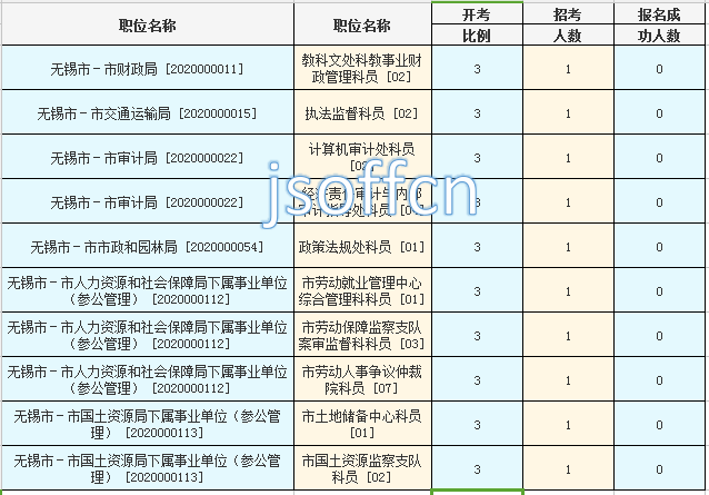 無錫市考報(bào)名人數(shù)最多的十大職位