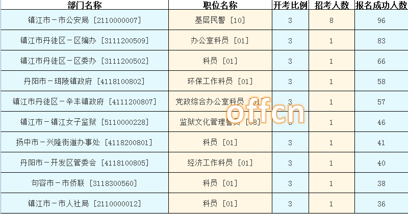 鎮(zhèn)江市考報(bào)名人數(shù)最多的十大職位