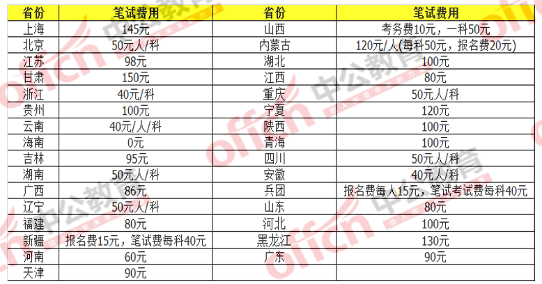2016公務員考試各地報名費用一覽:看看哪個省花錢最少