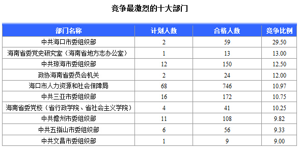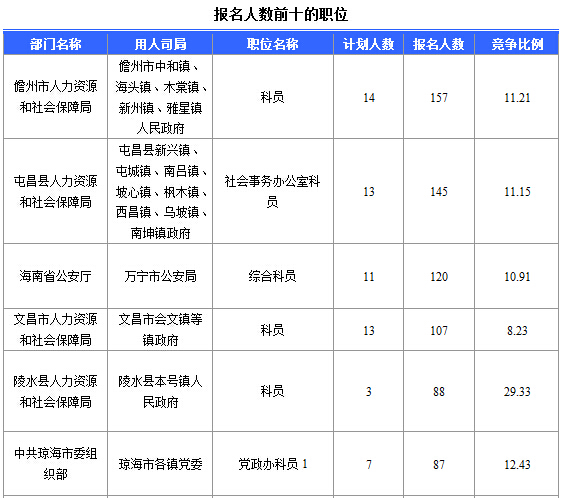 報(bào)名通過(guò)審核人數(shù)前十的職位主要集中在各大人力資源廳,具體信息如下: