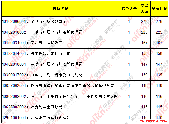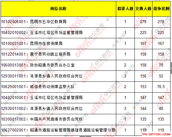 報(bào)名通過(guò)繳費(fèi)人數(shù)前十的職位