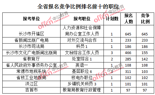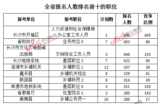 截止25日17時(shí),湖南全省報(bào)名人數(shù)排名的前三個(gè)職位,位次為