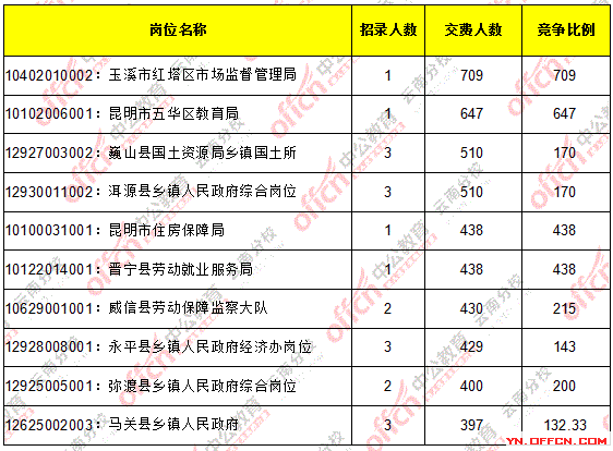 2016云南省考繳費(fèi)人數(shù)達(dá)146158人,最熱職位709:1_截止23日17時(shí)