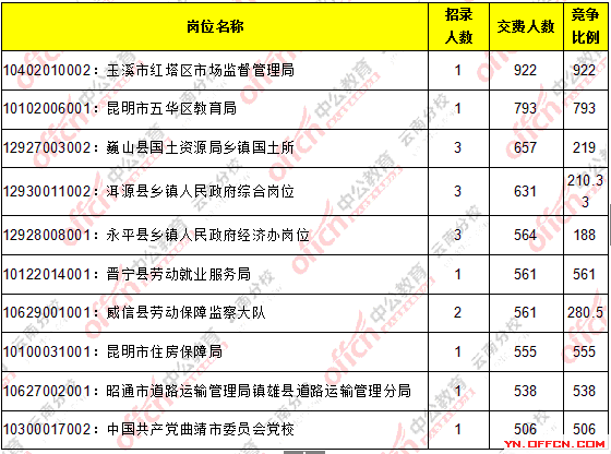 2016云南省考繳費(fèi)人數(shù)達(dá)183741人,最熱職位922:1_截止25日14時(shí)