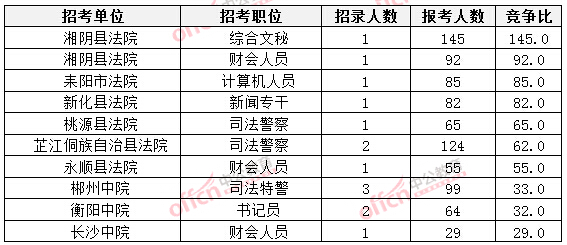湖南法院報名人數(shù)統(tǒng)計:各職位分析