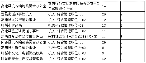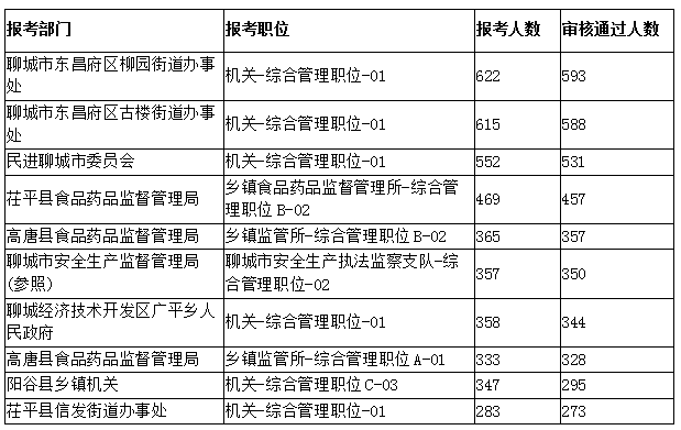 報(bào)名審核通過(guò)人數(shù)的后十個(gè)職位: