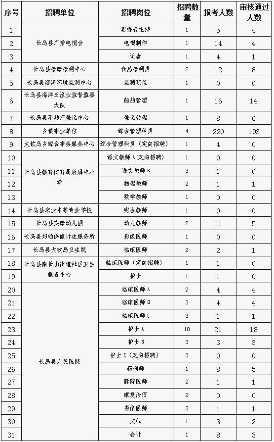2016山東長島縣事業(yè)單位招考報名情況統(tǒng)計(截止4月11日)