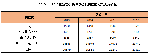 基層招錄人數實現“三連漲”,2016年漲幅比例