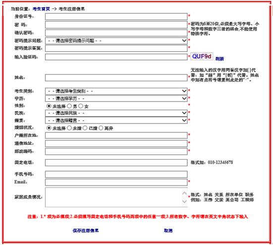 4、按要求填寫“考生注冊(cè)信息”