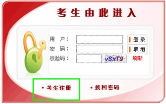 2、出現(xiàn)以下頁(yè)面,進(jìn)行考生信息的注冊(cè),如圖,點(diǎn)擊“考生注冊(cè)”