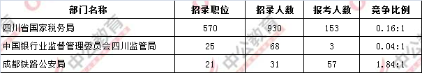 截止到15日16時(shí),通過審核人數(shù)前三位的部門依次是:四川省國(guó)家稅務(wù)局,中國(guó)銀行業(yè)監(jiān)督管理委員會(huì)四川監(jiān)管局,成都鐵路公安局,三部門通過審核總?cè)藬?shù)達(dá)213人,除去以上三個(gè)部門外,其他部門暫無人通過審核