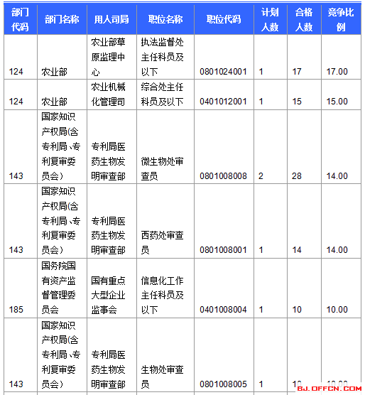 截止到15日16時,競爭比例的職位為農(nóng)業(yè)部農(nóng)業(yè)部草原監(jiān)理中心一職,招錄1人,截止到15日16時通過人數(shù)為17人,報名通過審核人數(shù)前十的職位主要集中在外交部、商務部、國家知識產(chǎn)權局(含專利局、專利復審委員會)等部門,具體信息如下: