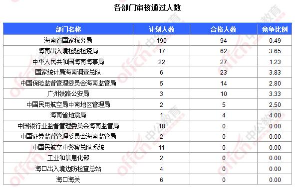 為幫助廣大考生更清晰的了解今日?qǐng)?bào)名情況,海南中公網(wǎng)校整理今天各部門(mén)的報(bào)名情況供廣大考生參考: