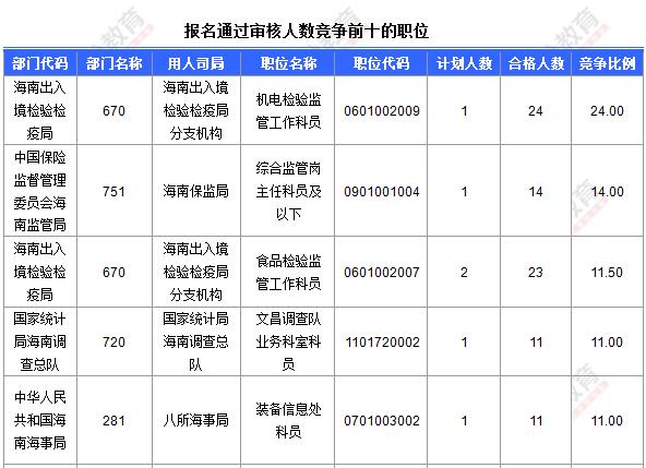 報(bào)名通過(guò)前十的職位具體信息如下: