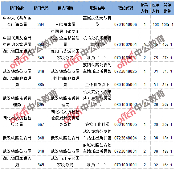 【截至16日16時】2017國考報名湖北1643人過審,最熱崗位103:1