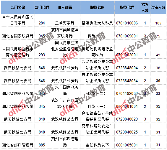 過審人數(shù)最多的職位