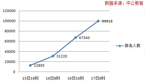 2017年國家公務(wù)員考試公告于10月13日發(fā)布,報(bào)名于15日開始,24日截止,中公網(wǎng)校會及時跟進(jìn)報(bào)名數(shù)據(jù),第一時間給廣大考生傳遞數(shù)據(jù)!點(diǎn)擊進(jìn)入:2017年國家公務(wù)員報(bào)名入口