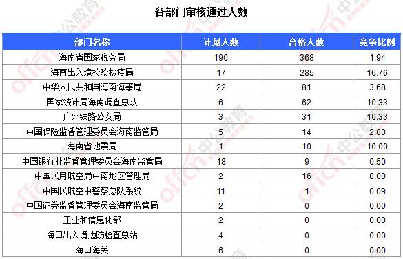 為幫助廣大考生更清晰的了解今日?qǐng)?bào)名情況,海南中公網(wǎng)校整理今天各部門(mén)的報(bào)名情況供廣大考生參考: