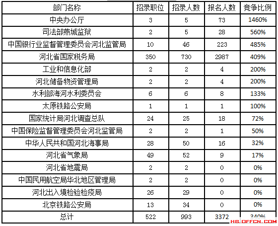 各部門競爭激烈情況