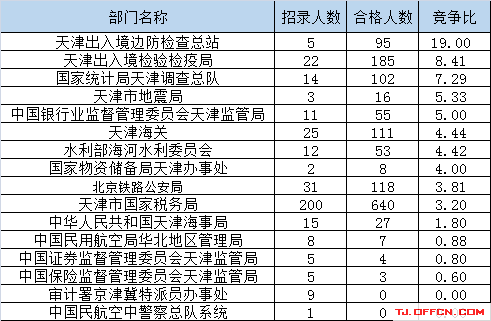 截止到17日16時,通過審核人數(shù)前三位的部門依次是:天津市國家稅務局、天津出入境檢驗檢疫局、北京鐵路公安局,三部門通過審核總?cè)藬?shù)達943人,占通過審核總?cè)藬?shù)的66.22%。