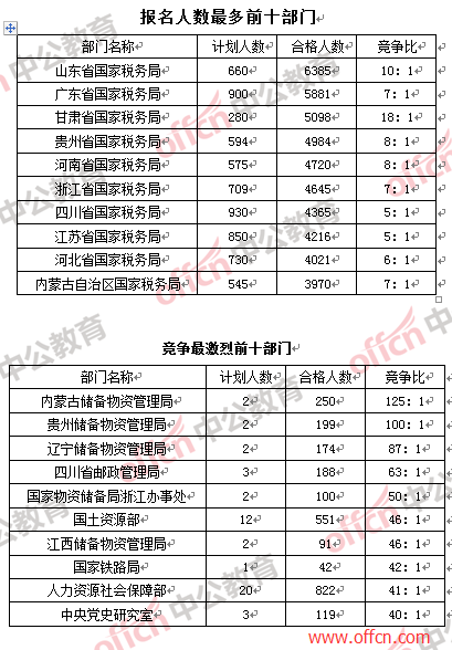 部門:報名人數(shù)前十被國稅“通吃”,內(nèi)蒙古物管局穩(wěn)坐“釣魚臺”