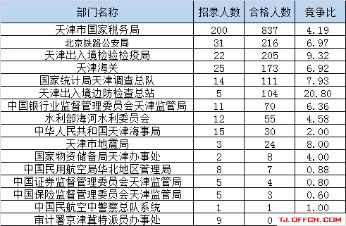 為幫助廣大考生更清晰的了解今日報名情況,天津中公網(wǎng)校整理了審核通過人數(shù)前五位的部門以及競爭比例最激烈的五大部門,供廣大考生參考:
