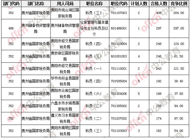 報(bào)名通過審核人數(shù)較多的職位主要集中在貴州省國家稅務(wù)局、貴州儲(chǔ)備物資管理局兩大部門,具體信息如下: