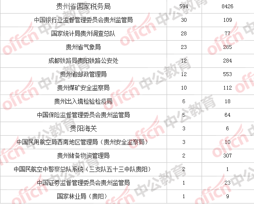 | 2017國考貴州各部門截止18日16時報名人數(shù)情況 | ||