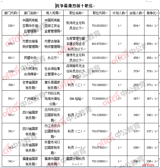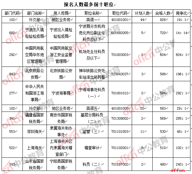 【截至18日16時】2017國考報名最熱職位競爭比達(dá)605:1