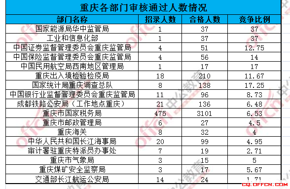 為幫助廣大考生更清晰的了解今日報名情況,重慶中公教育整理今天各部門的報名情況供廣大考生參考: