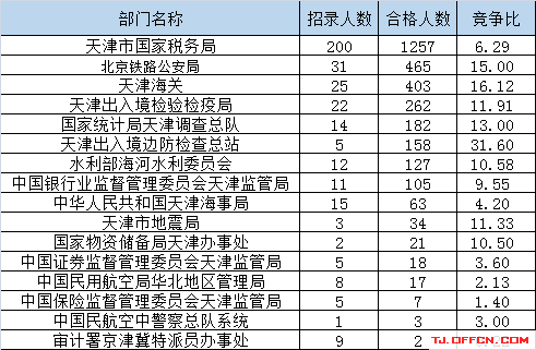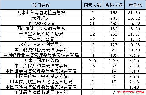 為幫助廣大考生更清晰的了解今日?qǐng)?bào)名情況,天津中公網(wǎng)校整理了審核通過人數(shù)前五位的部門以及競(jìng)爭(zhēng)比例最激烈的五大部門,供廣大考生參考: