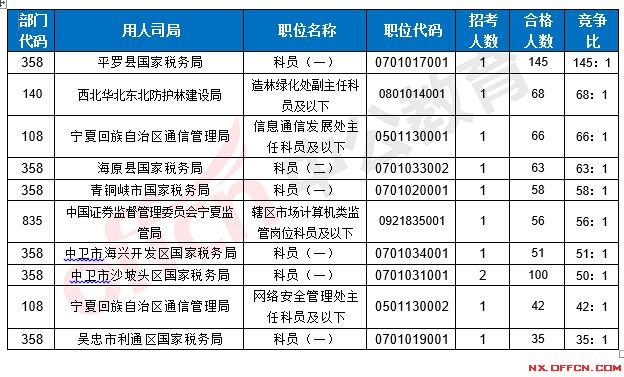 2017國(guó)考寧夏地區(qū)各部門報(bào)考情況