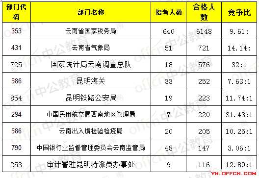為幫助廣大考生更清晰地了解今日報(bào)名情況,云南中公網(wǎng)校整理了審核通過人數(shù)部門排名,供廣大考生參考: