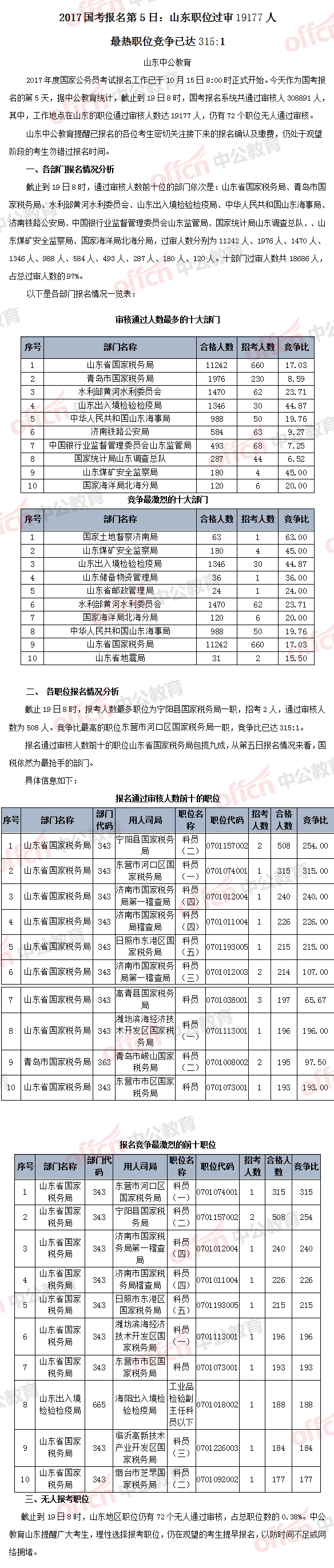 【截至19日8時(shí)】2017國(guó)考報(bào)名山東職位過審19177人 最熱職位競(jìng)爭(zhēng)已達(dá)315:1