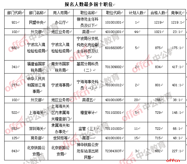【截至19日16時(shí)】2017國(guó)考報(bào)名數(shù)據(jù):民盟中央摘得“雙冠”