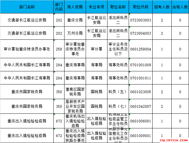 截止到20日16時,工作地點在重慶的職位共有9個無人報考,占全部職位的3%。下面是無人報考職位一覽表,中公教育專家建議廣大考生多關(guān)注一些較冷職位,避免激烈競爭,結(jié)合自身條件,找到屬于自己的職位。