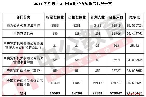 下面,中公網(wǎng)校專家將具體分析截至21日8時的2017國考報名數(shù)據(jù)。
