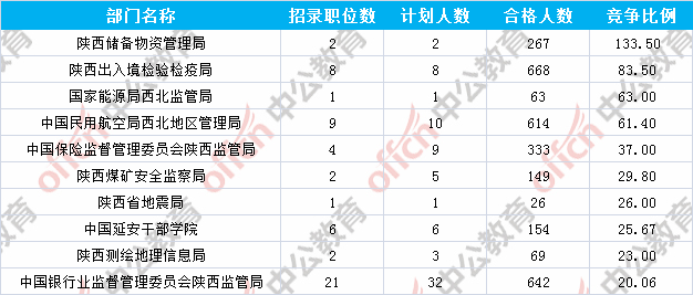 報(bào)名通過(guò)審核人數(shù)前十的職位主要集中在陜西出入境檢驗(yàn)檢疫局、陜西省國(guó)家稅務(wù)局、中國(guó)民用航空局西北地區(qū)管理局等部門,具體信息如下: