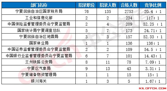 2017國(guó)考寧夏地區(qū)各部門報(bào)考情況