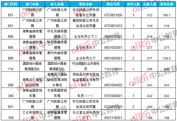 報(bào)名通過(guò)審核人數(shù)前十的職位主要集中在廣州鐵路公安局、國(guó)家統(tǒng)計(jì)局湖南調(diào)查總隊(duì)等部門,具體信息如下: