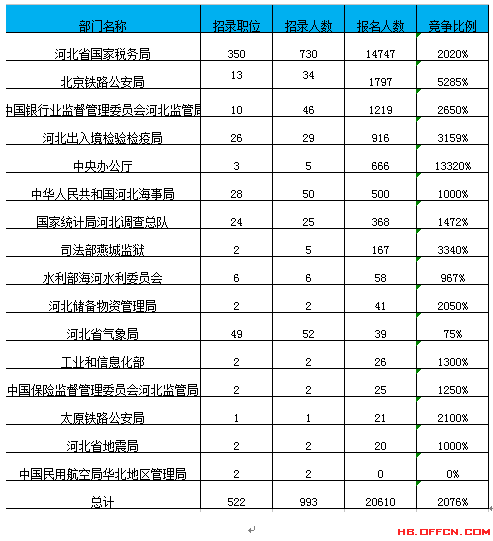 2017國考河北省地區(qū)所有職位報名情況下載表格查看: