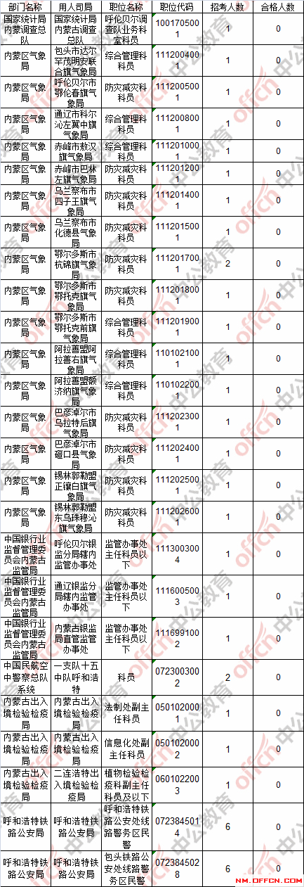 報(bào)名通過審核人數(shù)前十的職位主要集中在內(nèi)蒙古儲(chǔ)備物資管理局、內(nèi)蒙古固陽縣國家稅務(wù)局、內(nèi)蒙古土默特右旗國家稅務(wù)局等部門,具體信息如下:
