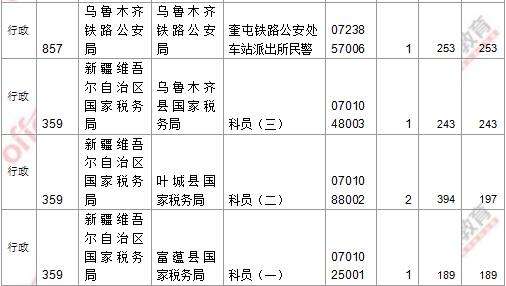 報名通過審核人數(shù)前十的職位主要集中在新疆維吾爾自治區(qū)國家稅務(wù)局、新疆儲備物資管理局、烏魯木齊鐵路公安局部門,具體信息如下: