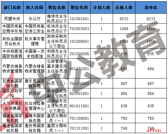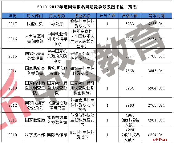【截至22日16時(shí)】2017國考最熱職位“勇奪”8年國考桂冠 6233人爭一職