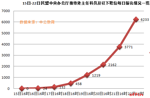 中公教育專輯從昨日數(shù)據(jù)中可以看到,民盟中央辦公廳接待處主任科員及以下(職位代碼為101001001)昨日的報(bào)名人數(shù)為3772人,競爭比例3771:1,自19日開始2017國考,今日也創(chuàng)下了2017國家公務(wù)員考試報(bào)名期間單個(gè)職位單日增長最快的記錄——2462人,在原本報(bào)名數(shù)量就很大的時(shí)候,這樣的增長速度是非常驚人的。