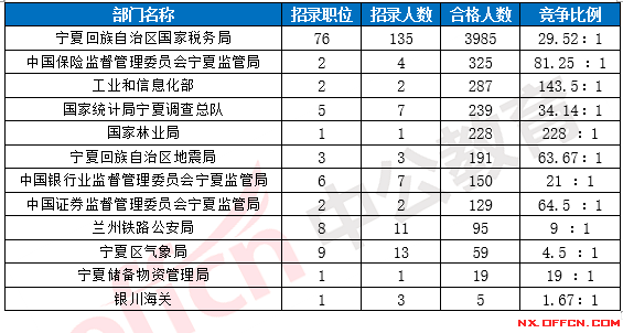 2017國考寧夏地區(qū)各部門報(bào)考情況